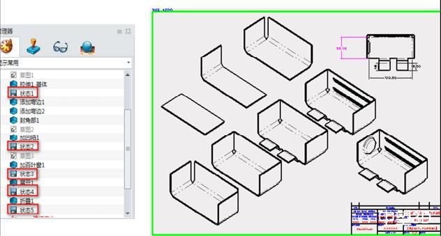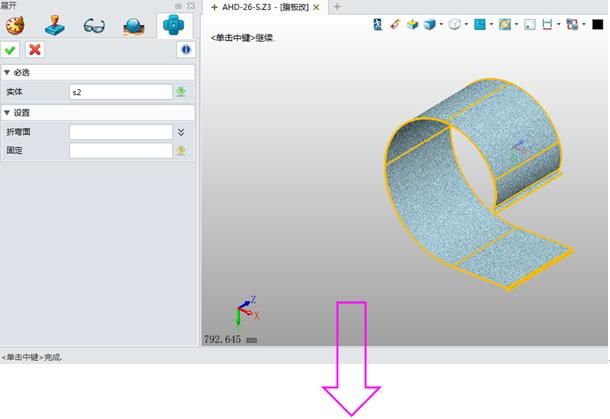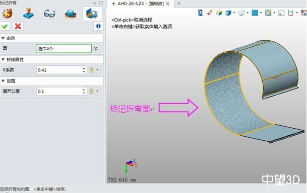4、xelega3D能支持标记折弯。当要对非使用钣金命令创建的钣金进行折弯或展开时,首先要标记折弯面。如下图零件就是使用“拉伸”命令完成的特征,只需两步便可轻松完成折弯,省时省力。