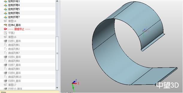 3、xelega3D支持沿线折弯。如下图零件就是使用“沿线折叠”命令完成的特征,操作过程简洁快速。
