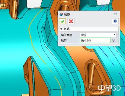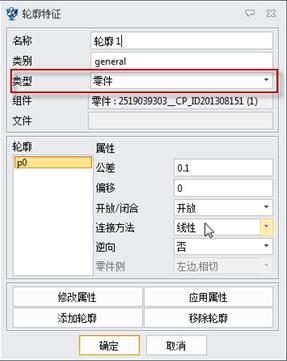 并把轮廓特征的“类型”改为“零件”。