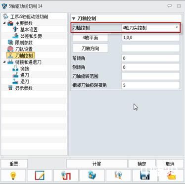 修改刀轨的主要参数,并将刀轨修改为“四轴加工”。