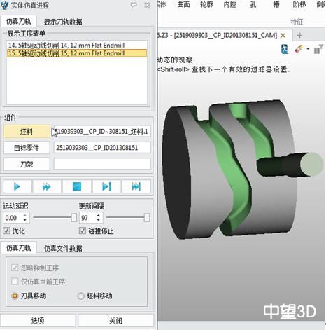 运用同样原理,生成另外一个刀轨。在实体仿真中,还可清晰明了地看到四轴加工的效果。
