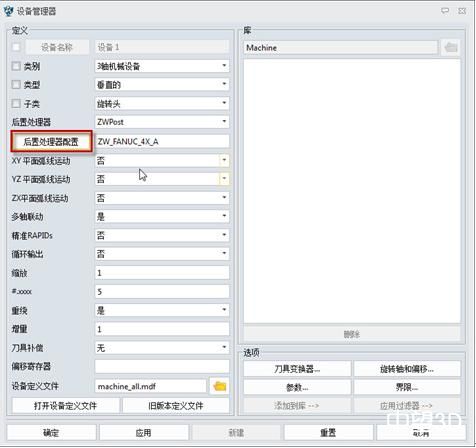 在机床设备里面,选择四轴后处理。