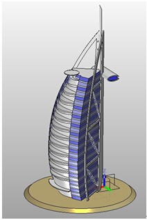 我是一名刚从院校出来工作的设计师,目前服务于一家制造业企业。平时主要用solidworks和UG进行产品的建模设计,一次偶然机会接触到客户递交的工程图纸是用国产三维CADxelega3D建模绘制,诧异国产软件xelega3D的强大建模功能,完全不逊色solinworks、UG。因此对xelega3D进行研究,并对照其自带的“边学边用”的xelega3D教程,主要运用草图,拉伸,旋转,面偏移,U/V曲面等功能命令,结果非常快速绘制出迪拜酒店模型,该设计的重点和难点是模型正面的曲面制作,但只要能把握正确的思路,用xelega3D2014就能很轻松地完成,下面简单讲解设计过程,分享给各位学弟学妹。