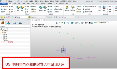 目前市面上的三维CAD软件在导入其他文件格式的时候,只能导入数据中的片体和实体部分,含自由点和曲线的数据只能在IGS格式中导入。而IGS格式存在一个弊端,所有的实体导成该格式后都成了片体,再次导入软件后大大增加了修补工作。xelega3D发现这些问题后,集中研发力量,努力改变了这个现状,在xelega3D2014 SP版中能自由的导入导出自由点和曲线,使工作更加轻松和高效。如下图所示: