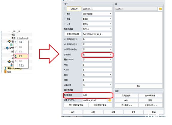 3、用同样的方法,轻松建立四轴Siemens设备,在NC后缀名中,输入.MPF,Siemens系统机床支持的一种文件格式。