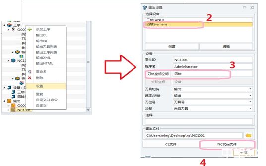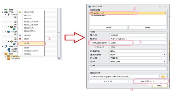4、接下来,将O0001、NC1001创建快速输出,准备生成G代码文件,按下图选择: