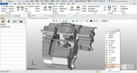 1、打开零件图,进入xelega3D设计模块,单击右键进入到xelega3D的工程图模块。